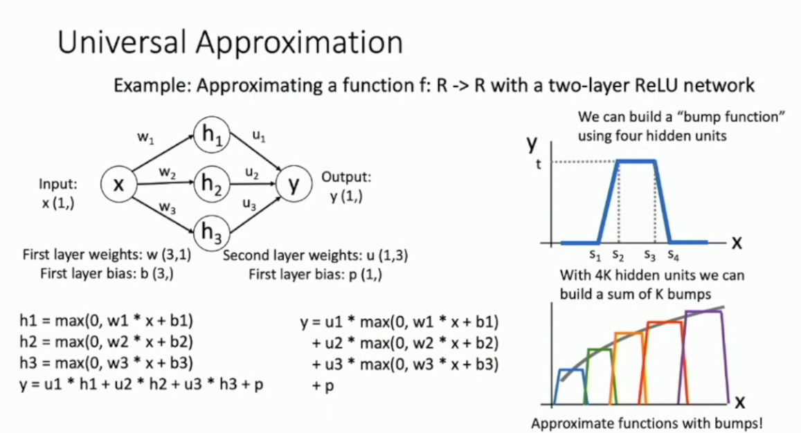 ,而后者则表示了所有图像的分类结果。我们可以证明,不低于两层的神经网络是具备 Universal Approximation 性质的。证明的思路其实比较简单,就是通过 ReLU 函数来构造基本单元,再用基本单元来做任意精度的拟合。以 为例,Proof Sketch 如下图所示: