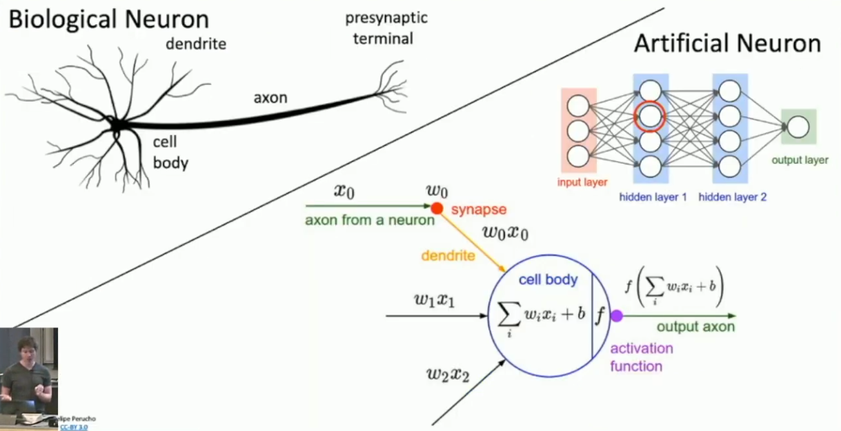 实际上,Neural Nerwork 和生物学神经网络并没有必然的联系,相对准确的说法是前者的发明受到了后者的启发。在这里我们就大致讲讲两者之间的相似性。