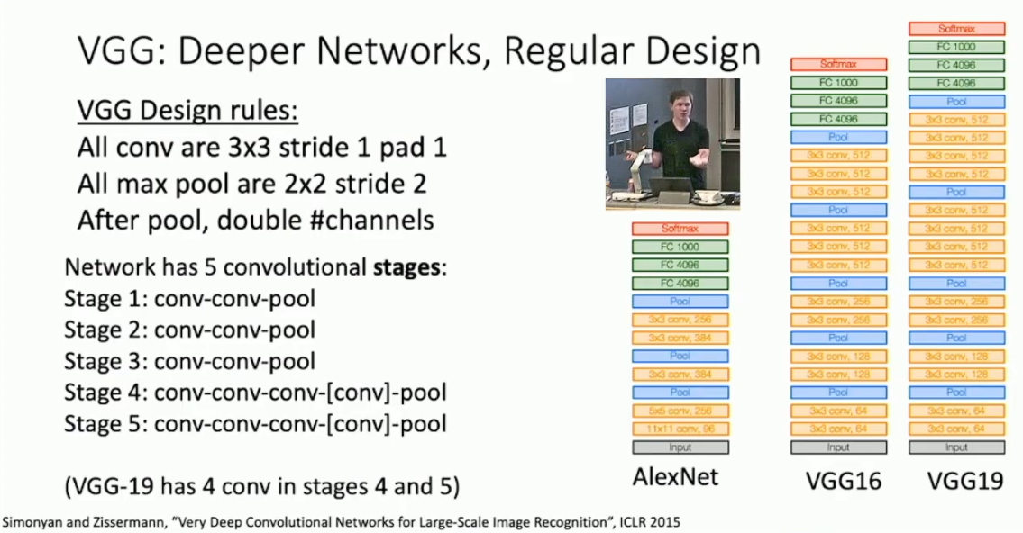 2013 年的 ZF Net 基本是一个大号的 AlexNet ,所以我们就略去不讲。而 2014 年则同时有两个模型取得了相近的优异表现,而且各自的实现思路有较大不同,其一是 VGG Net 。1