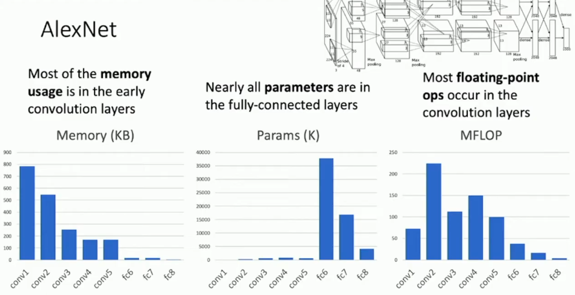 下图是 AlexNet 各层开销的柱状图,并略去了开销极小的池化层: