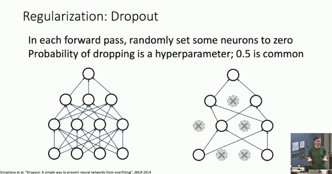 - 特别的,Dropout 一般只用于全连接层,而后来的 CNN 基本很少用全连接层了。这时采取的 regularization 一般就是 Batch Normalization 。