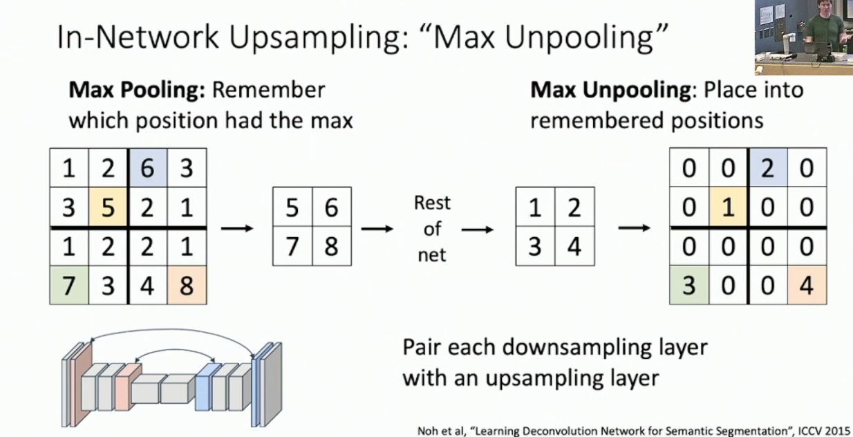 而 average pooling 对应上采样一般是 Nearst Neighbor Unpooling 或者 Bilinear Interpolation 之类的。11