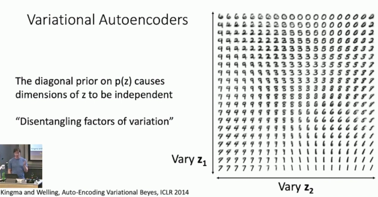 服从独立高斯分布,所以我们可以期待 的每一维都编码了特定的信息。举例来讲,对于 MNIST 上训练的 VAE ,若改变其特征 的两维,我们可以期待看到这样的效果: